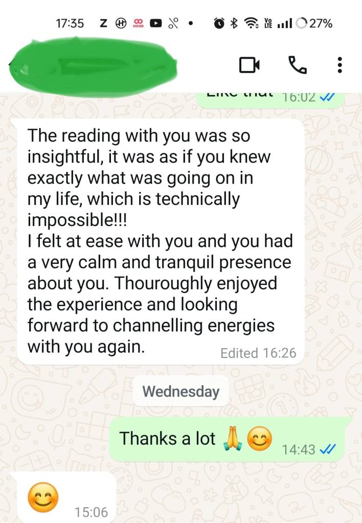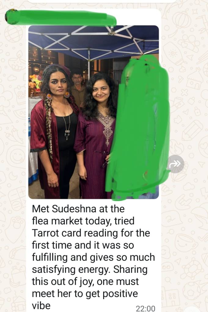 During a recent flea market event, one of our valued clients shared their heartfelt experience with our tarot reading session. They described it as deeply fulfilling and energizing, leaving them with a sense of positivity and clarity. Their words highlight how our readings create a satisfying and uplifting experience. Encounters like these motivate us to continue spreading positive vibes and meaningful guidance.